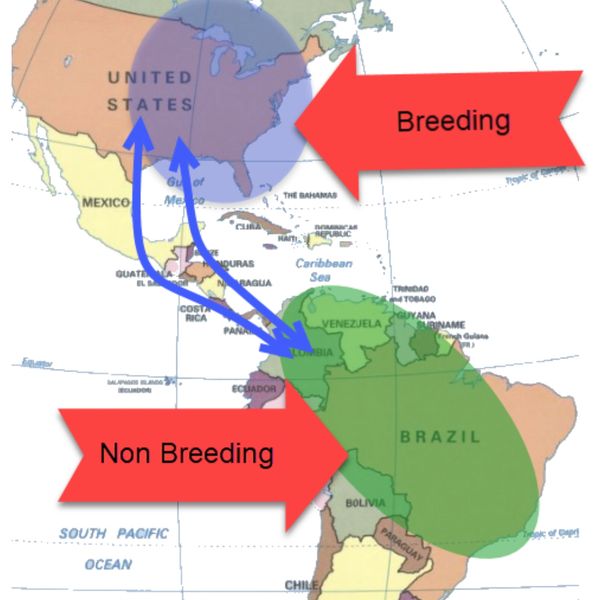 Purple Martins are neotropical migrants. This means they migrate every spring from their wintering grounds in Central and South America (the neotropics) to their breeding grounds in North America. The breeding season begins in January. In July, the Purple Martins begin their journey back to their non-breeding grounds in South America. The full migration may take 2-3 months to complete.